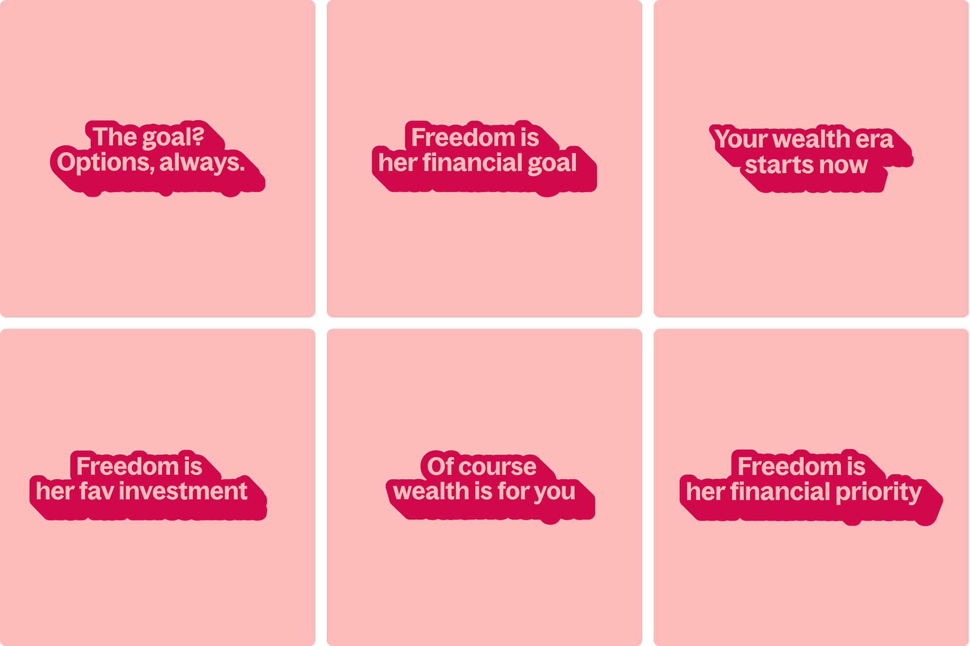 At the core of Friends That Invest is the belief that wealth building can—and should—feel second nature to everyone. Our brand idea, ‘Fluent in finance’, is centred on this posture: a stance that’s confident and unapologetic, and makes investing feel as normal and intuitive as managing your daily life. It allowed us to retain the community charm and girly-pop vibe FTI is so well known for, while bringing a new maturity that reflects where the business is headed and anchoring future product growth with a clear centre of gravity.