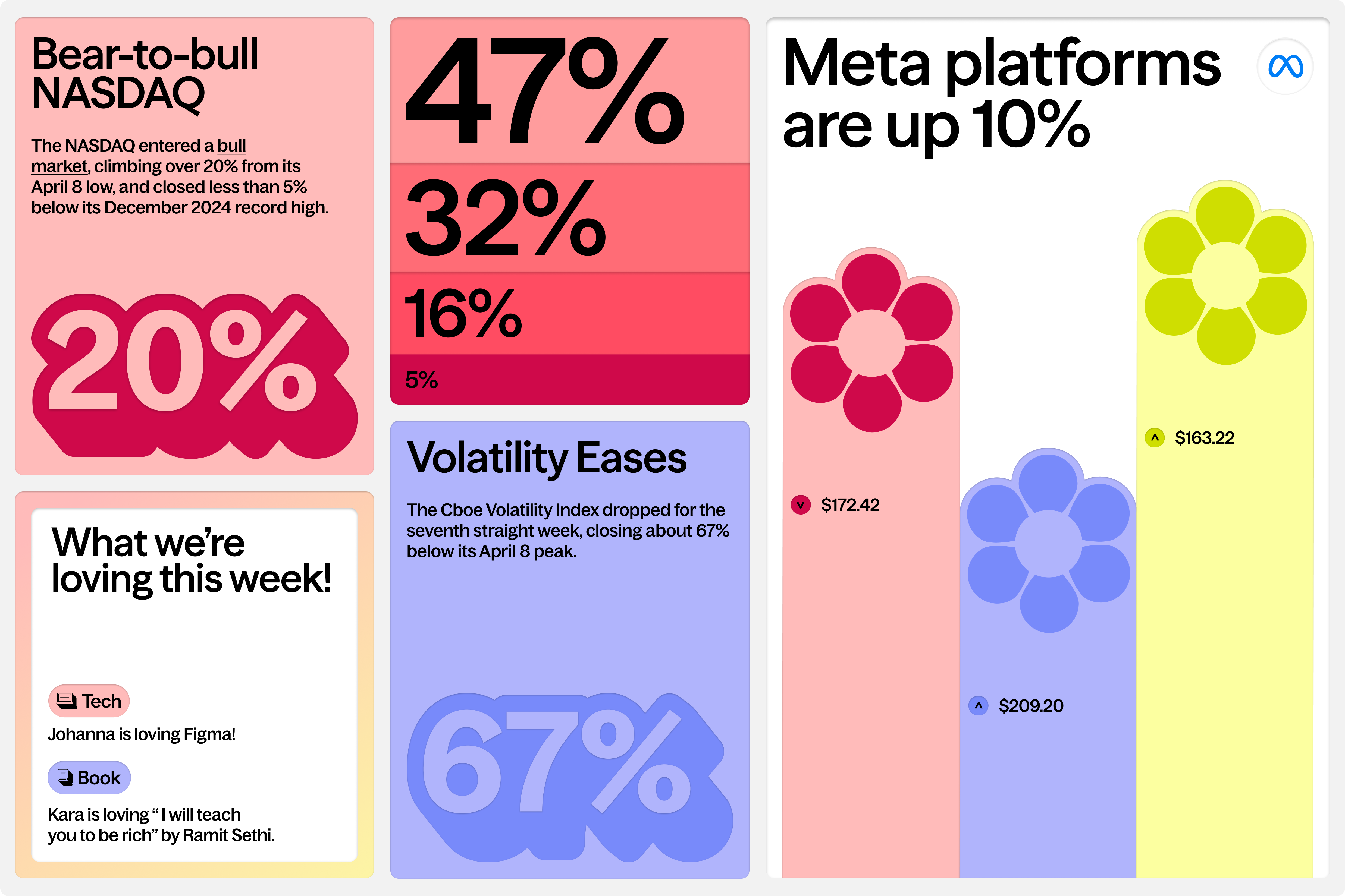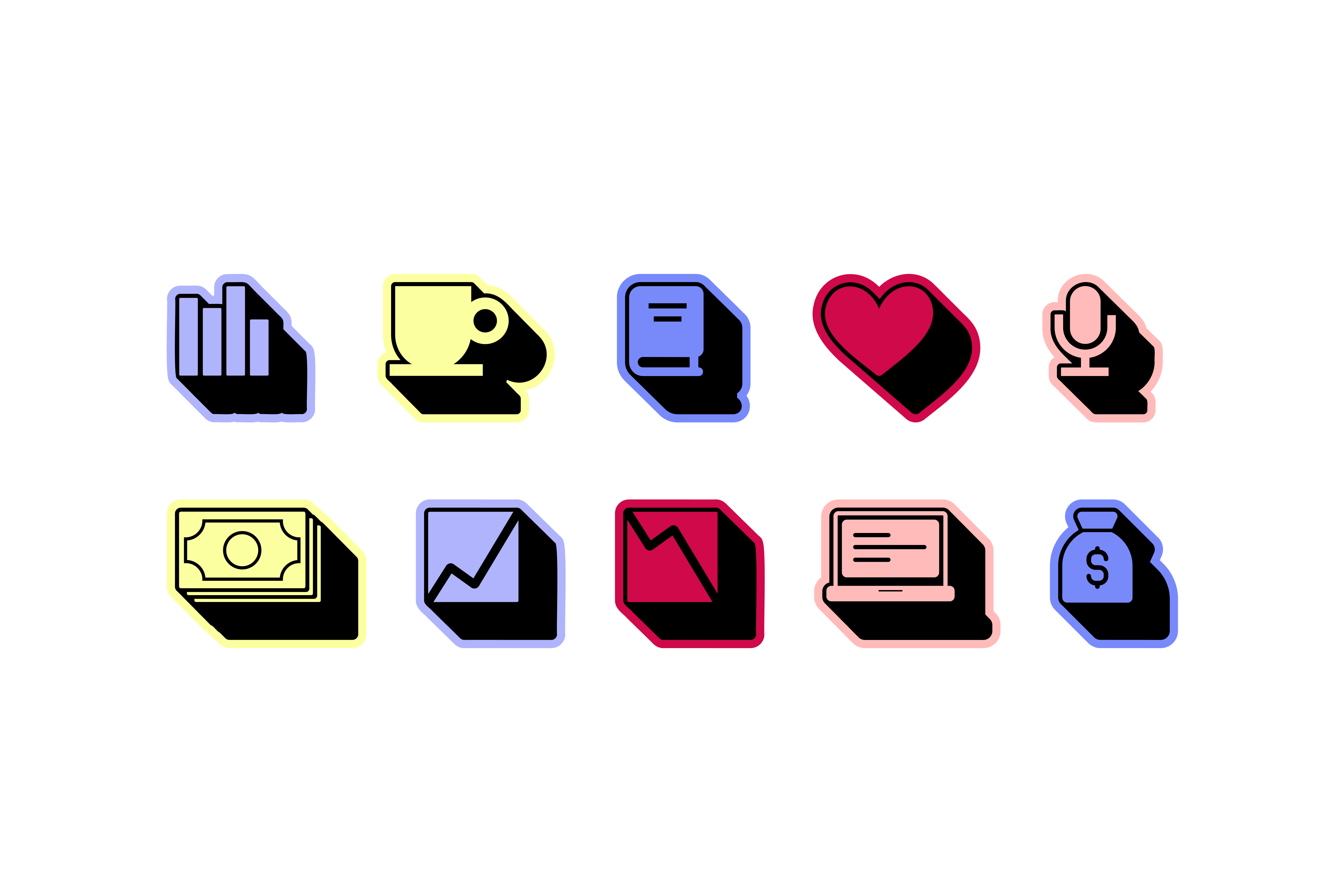 Our graphic language is based on the daisy chain — a true representation of the Friends that Invest community of “Investie Besties” growing together and becoming financially fluent. Our ‘F’ logo mark carries an unapologetically bold yet feminine aesthetic. The stylised compounded nature of the shape speaks to growth and momentum — we’re always facing forward with confidence and glowing up towards financial independence. This compounded effect extends across the identity, enabling confidence to come through in every touchpoint, from hero copy lines to iconography. The colour palette amplifies this energy with hues of pinks, purples, and yellows that balance ultra-femininity with sophistication, giving the brand both warmth and flexibility.